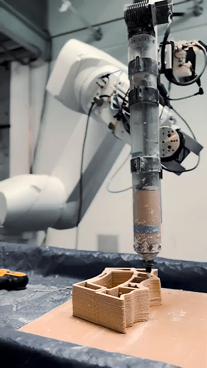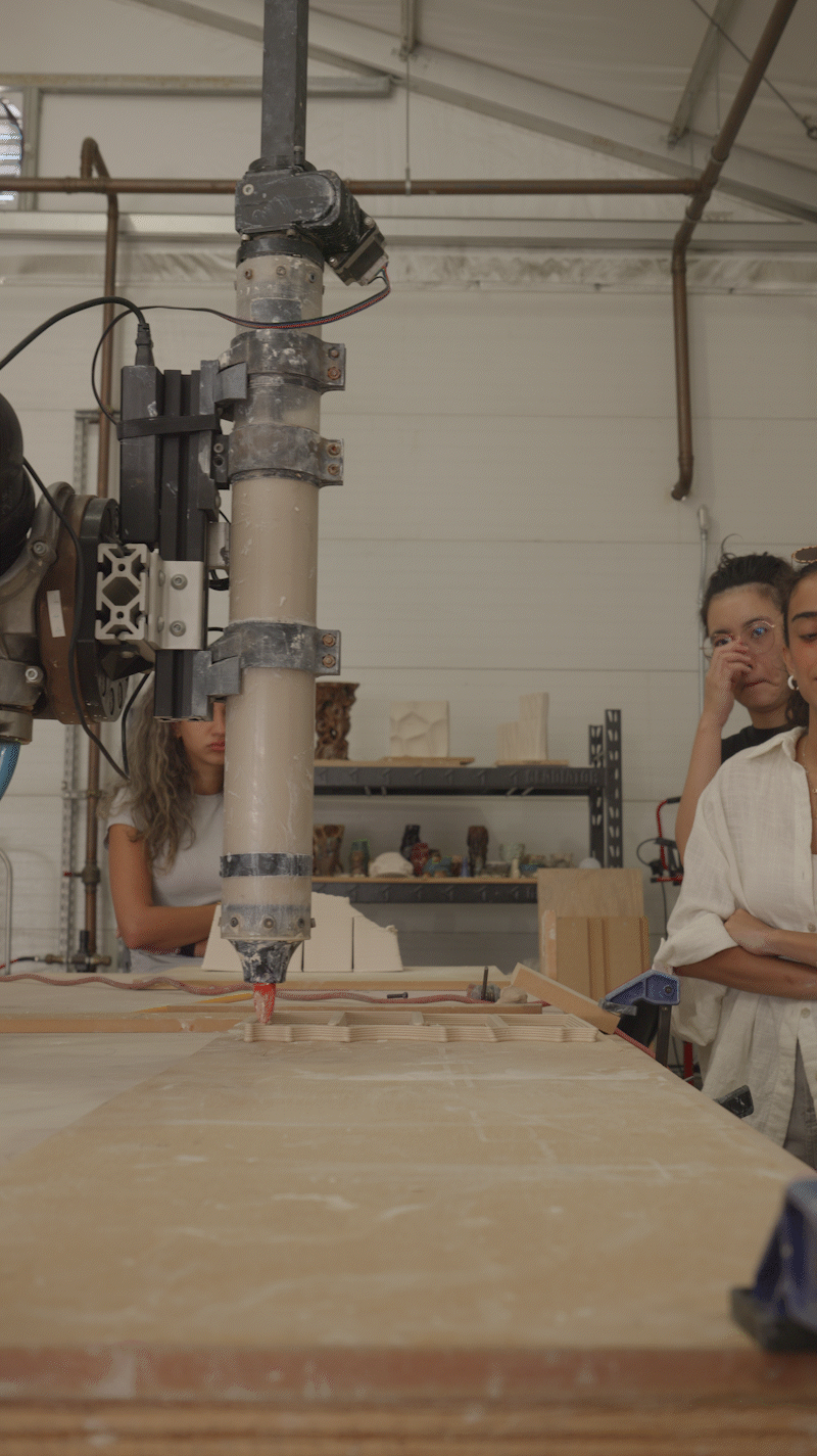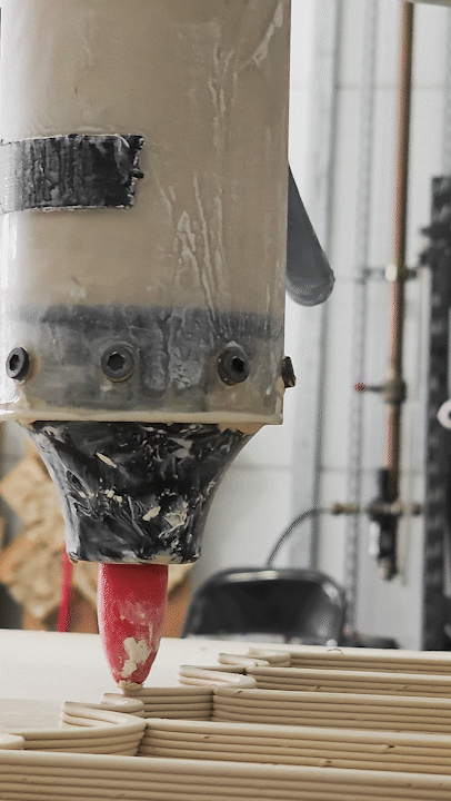 The composite envelope is subdivided into discrete masonry units, whose complex geometries and substructures are parametrically generated in Grasshopper for Rhino. Geometric data is translated into coordinated toolpaths, converting design intent into commands that directly drive the robotic fabrication process.