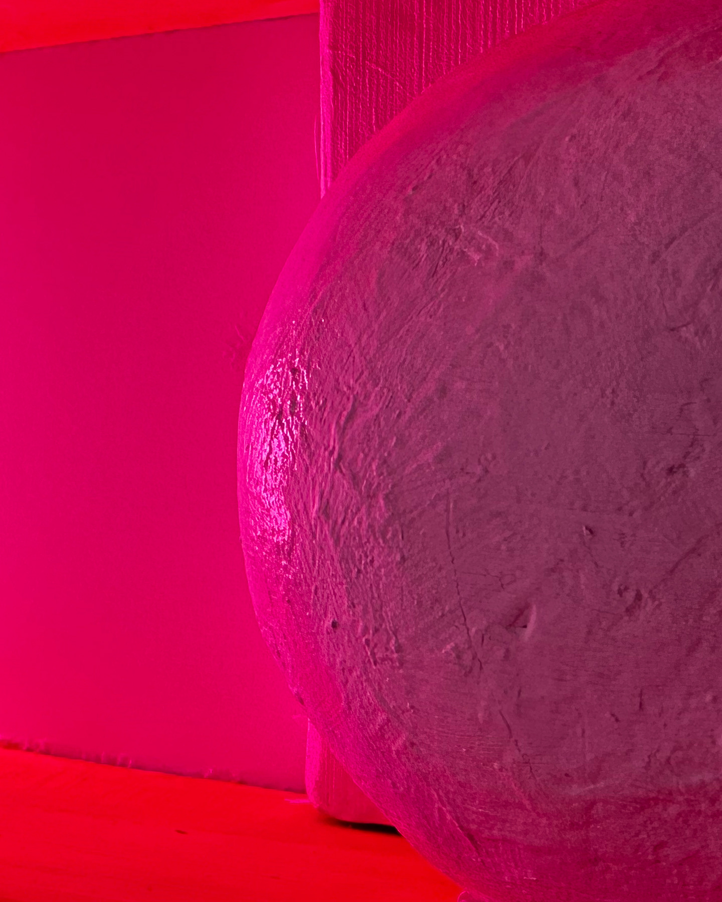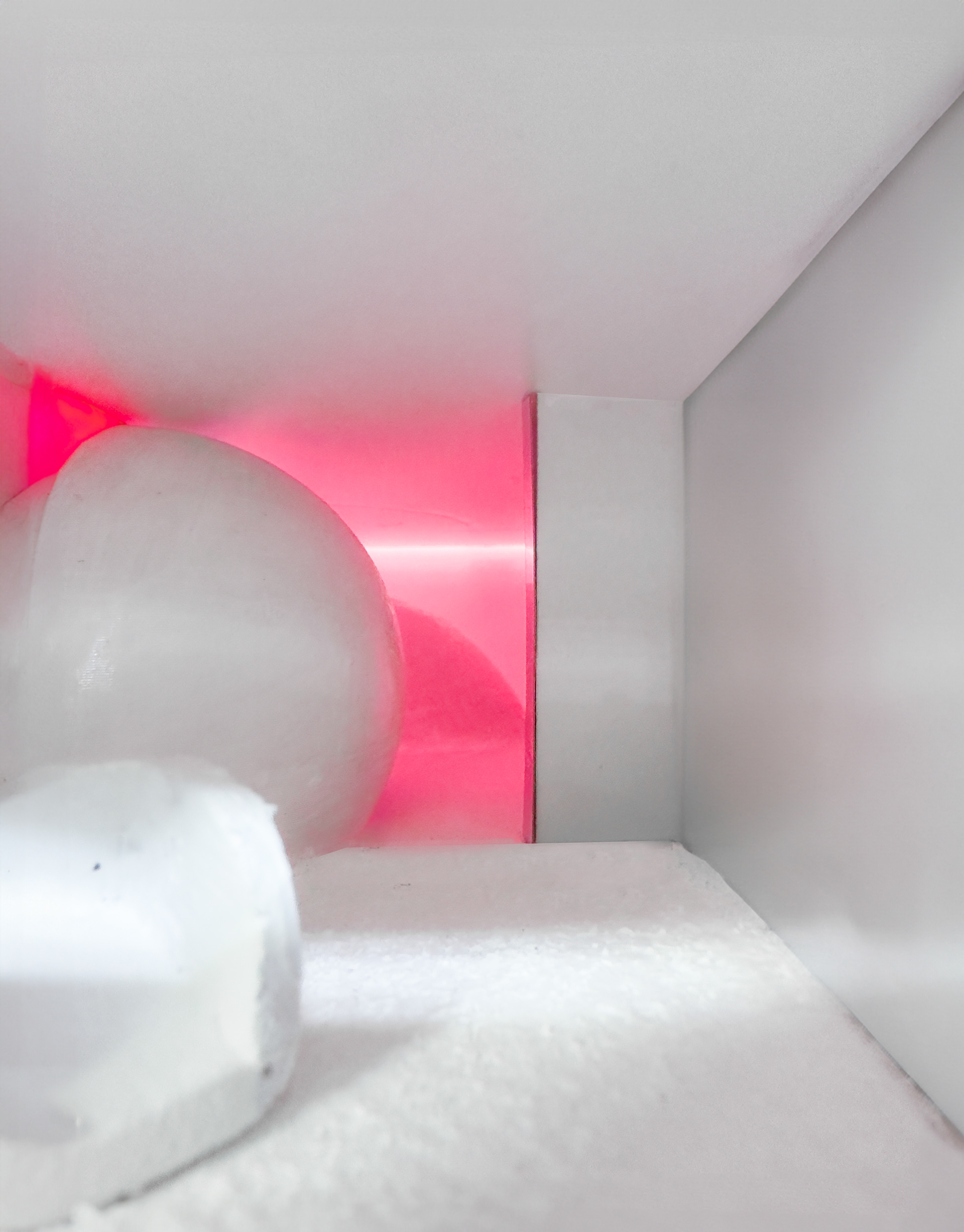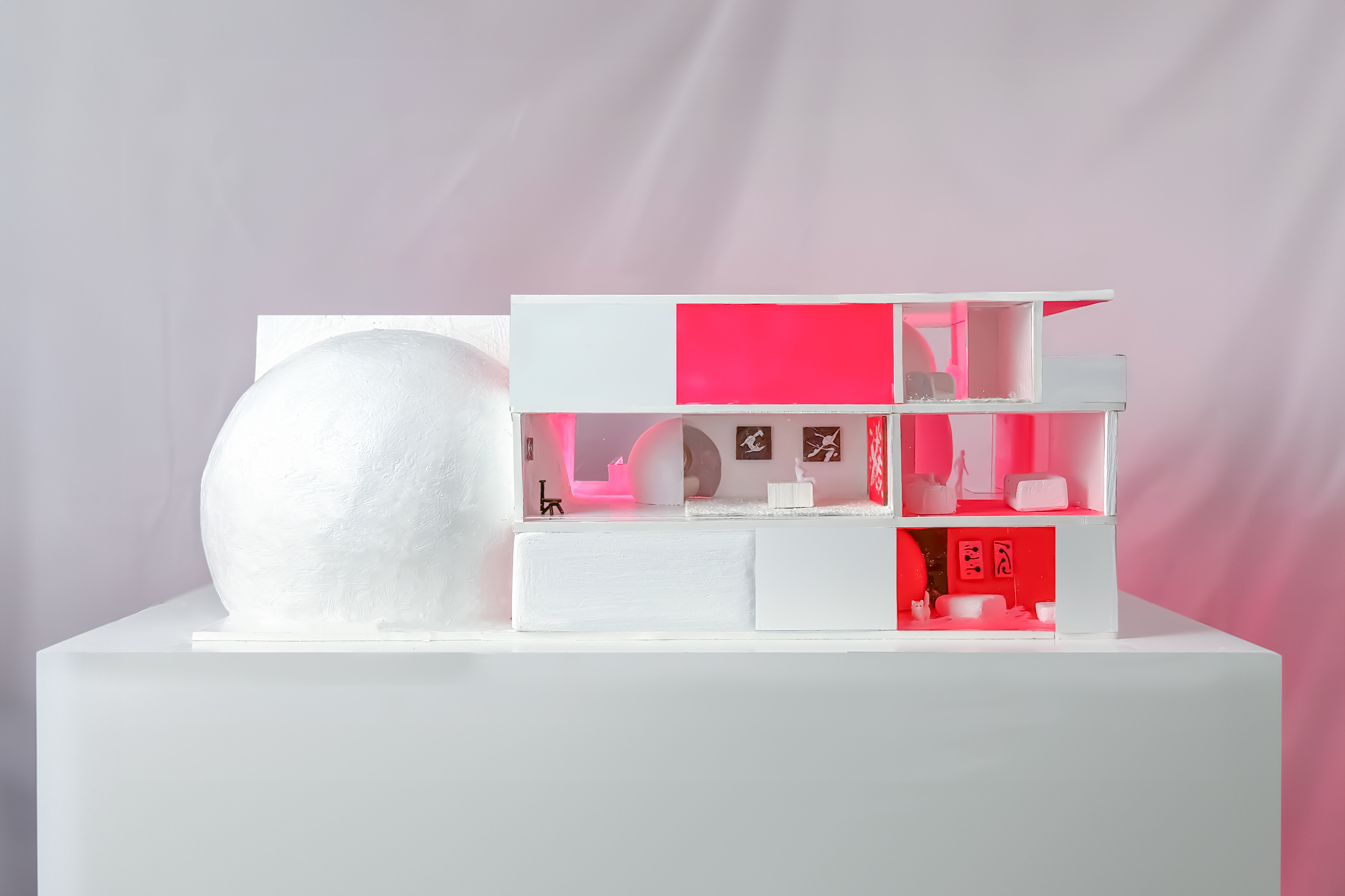 The concept begins with the sphere as a spatial divider—sometimes obstructing, limiting, or partially guiding visibility and movement between rooms. Pop-colored light adheres to the sphere, activating its surface as a carrier of identity and atmosphere. As light wraps, cuts, and bleeds across edges, each sphere is chopped, scaled, and reoriented to manipulate interior programs and circulation, functioning as thresholds rather than fixed boundaries.
