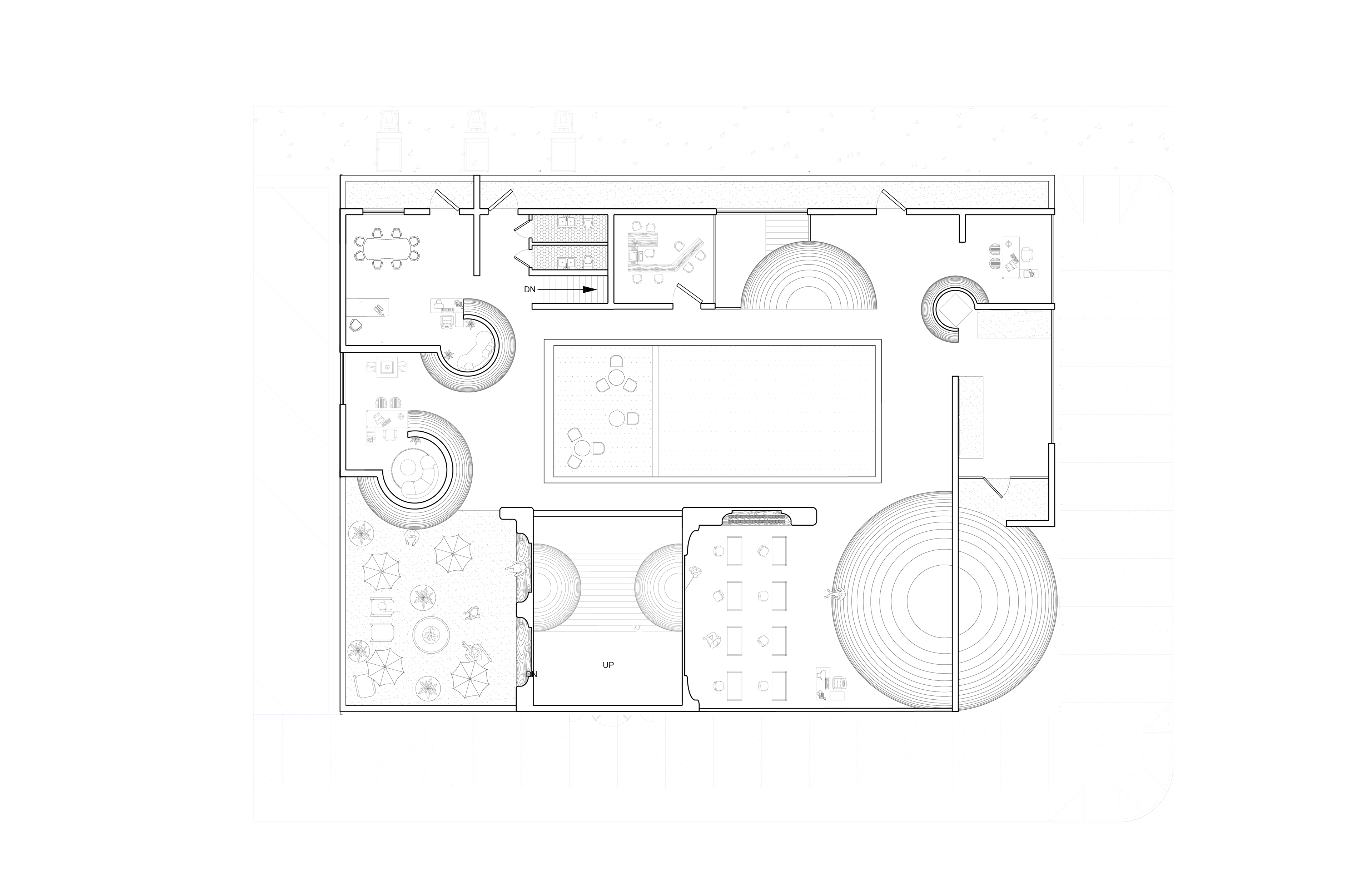 Together, the collective identity unfolds through a choreographed sequence in which spheres and pop-colored light operate as a dual force, weaving rhythmic emotional and visual connections. Each room’s character is tuned through color intensity—from soft, neutral atmospheres in shared spaces to saturated hues in experimental areas—casting layered depth outward, where interior identities resonate across the facade and into the city.