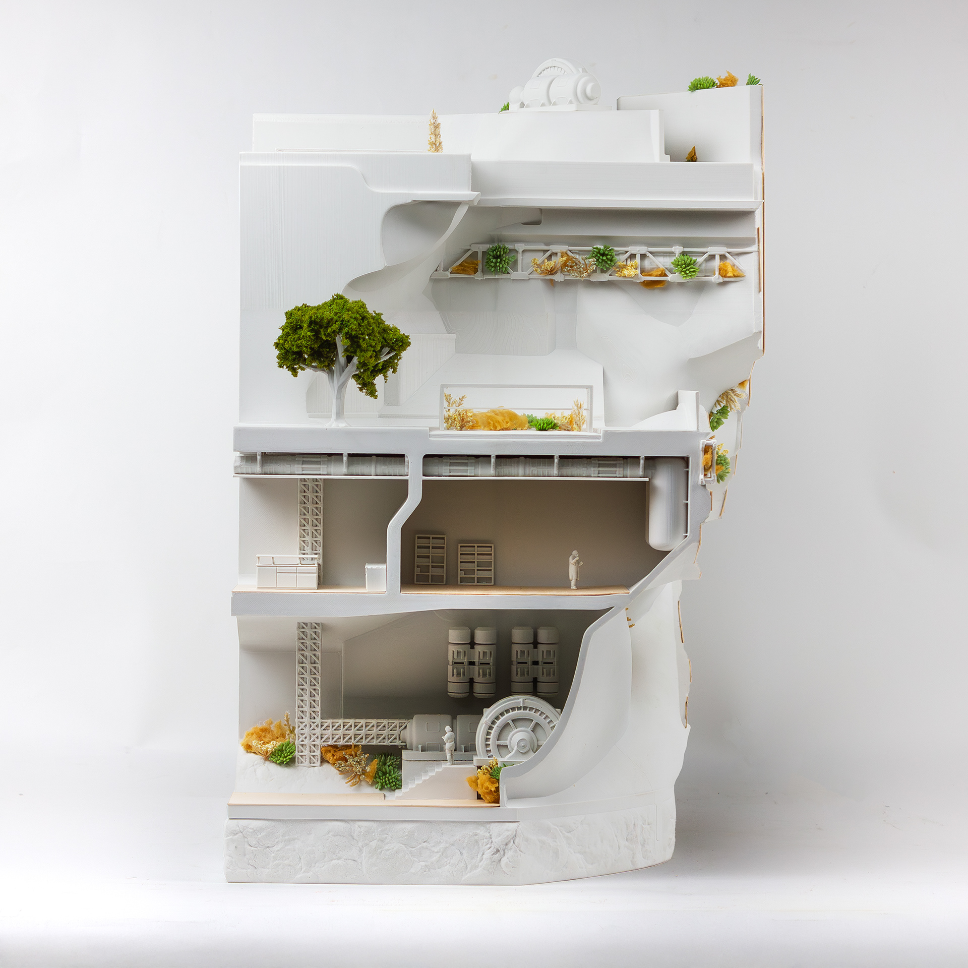 Our project is a research institute nestled near the LA River, dedicated to the study of plants and fauna native to the Californian chaparral. Here, the natural world and the built environment converge—an architecture that reflects the delicate balance between life and water in an ever-changing landscape. The design connects the interior research spaces with the surrounding ecosystem, with chambers tailored to explore the qualities of dryness and wetness, air and water filtration, and resilience in the face of urban heat and scarcity.