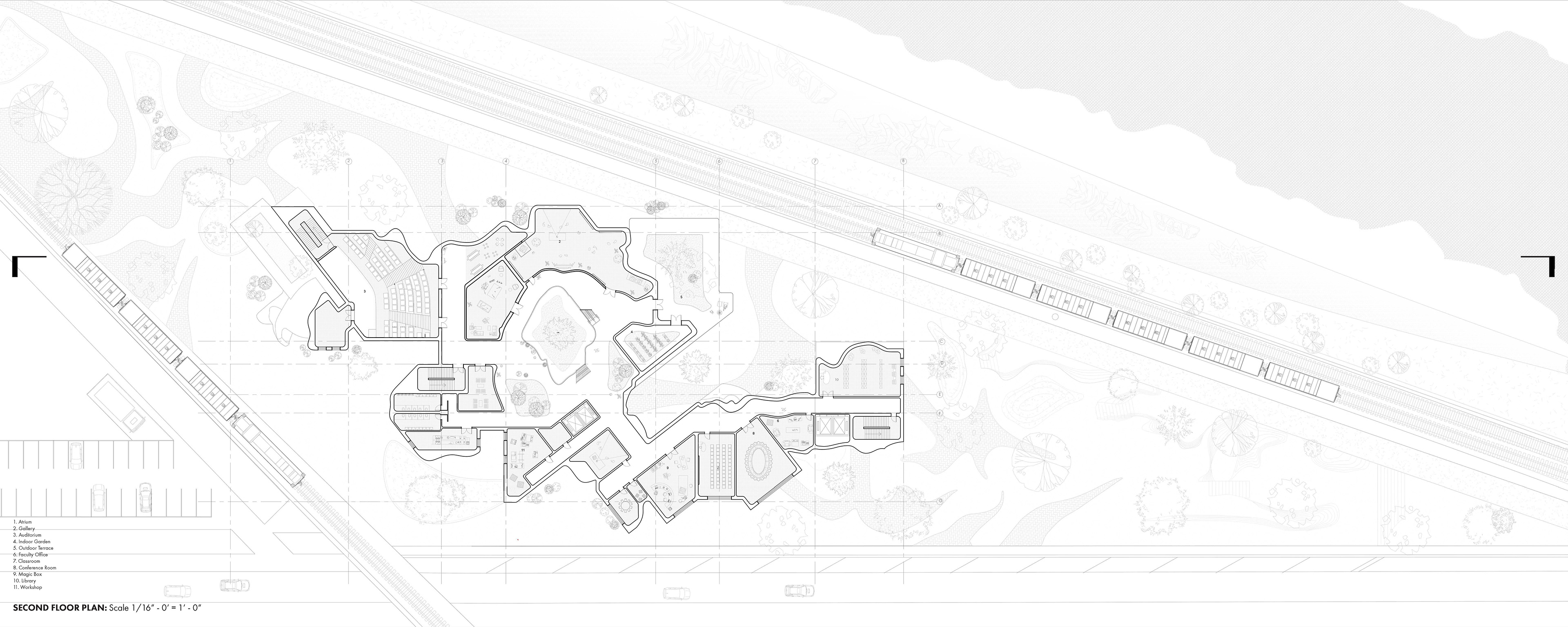 Inspired from the culture and landscape of Los Angeles, the abstract crustation becomes a medium for the developments of forms, formal expressions, and flow of motion throughout the project. This, then, becomes a driving forces for transforming the existing building of the Lincoln Height Jail to a research Institute that focuses on the resilient ecosystem.