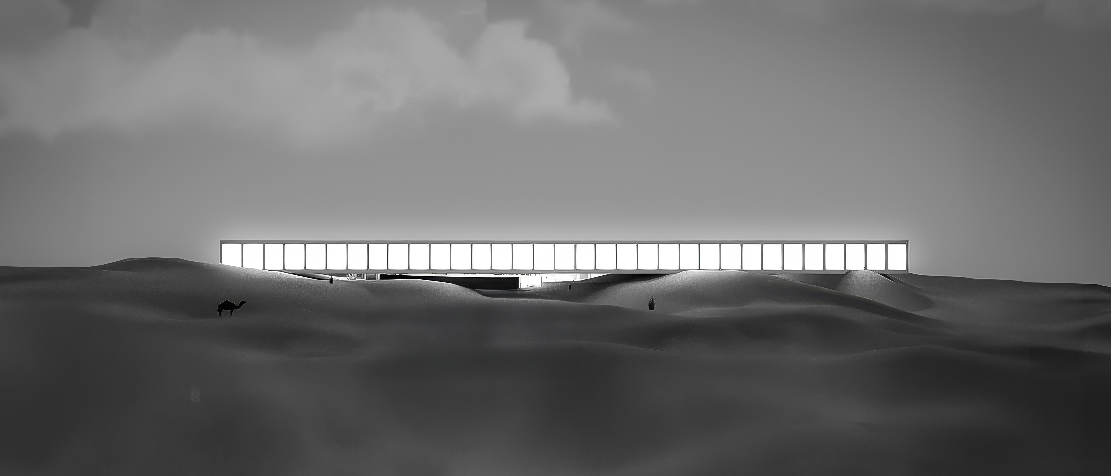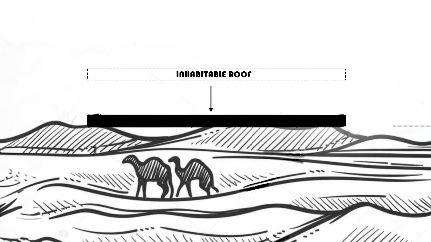 The concept begins with a habitable roof—an urban datum mediating between living dormitories and shared amenities—while sheltering the valley below as an academic platform. Defined by gridded transparent frameworks and dune-based typologies, the roof forms a continuous volume that reframes desert horizons, treating the desert not as a constraint but as architectural inspiration.